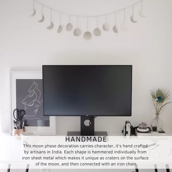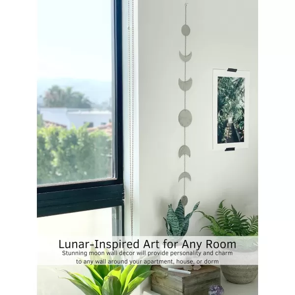 Moon Phase Wall Hanging home decor creates a glowing energy in any room. Its modern boho style is a beautiful accent piece to hang anywhere and add lunar-inspired magic above a bed, mirror, or window