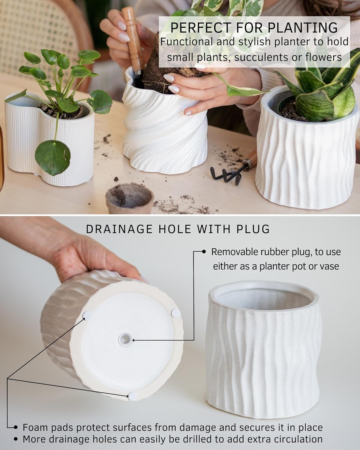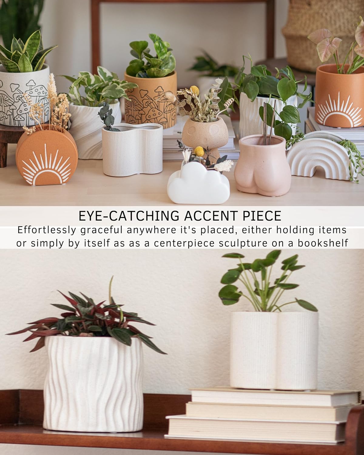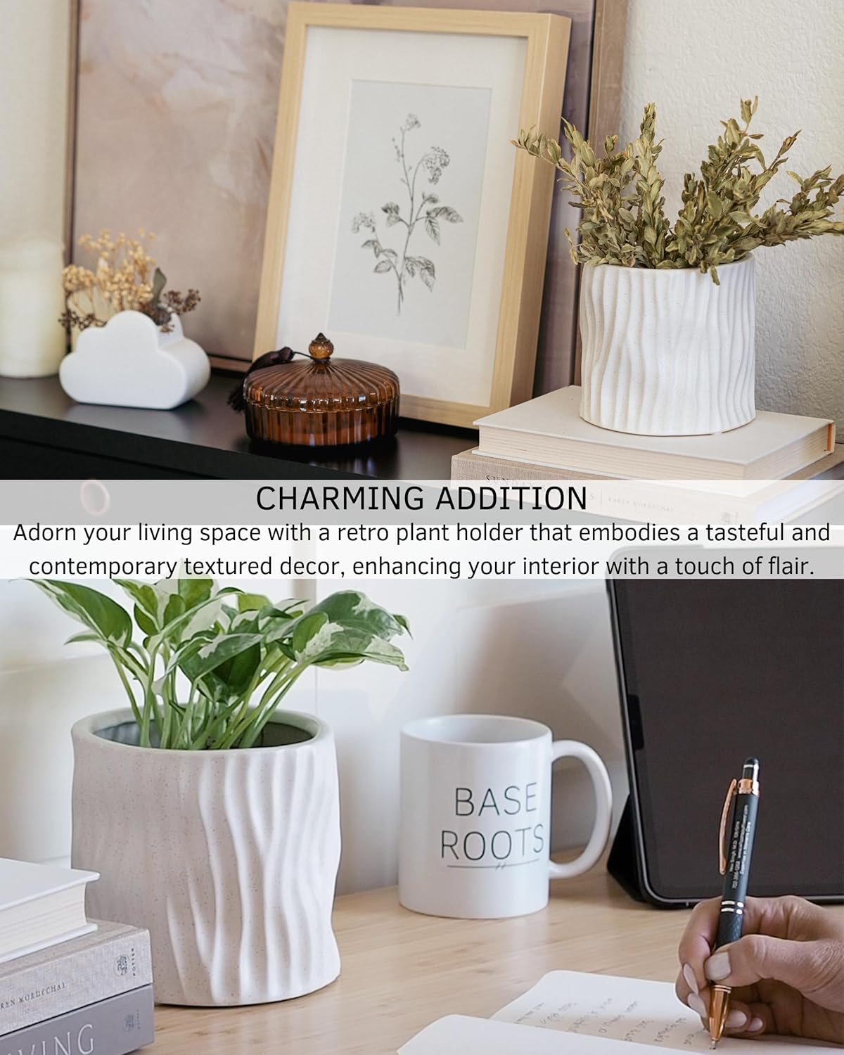 Stunning swirl textured design adds dimension to any space. Uniquely shaped for a beautiful and mid century style look. Versatile decorative vase as a boho planter pot, accent art piece, or organizer